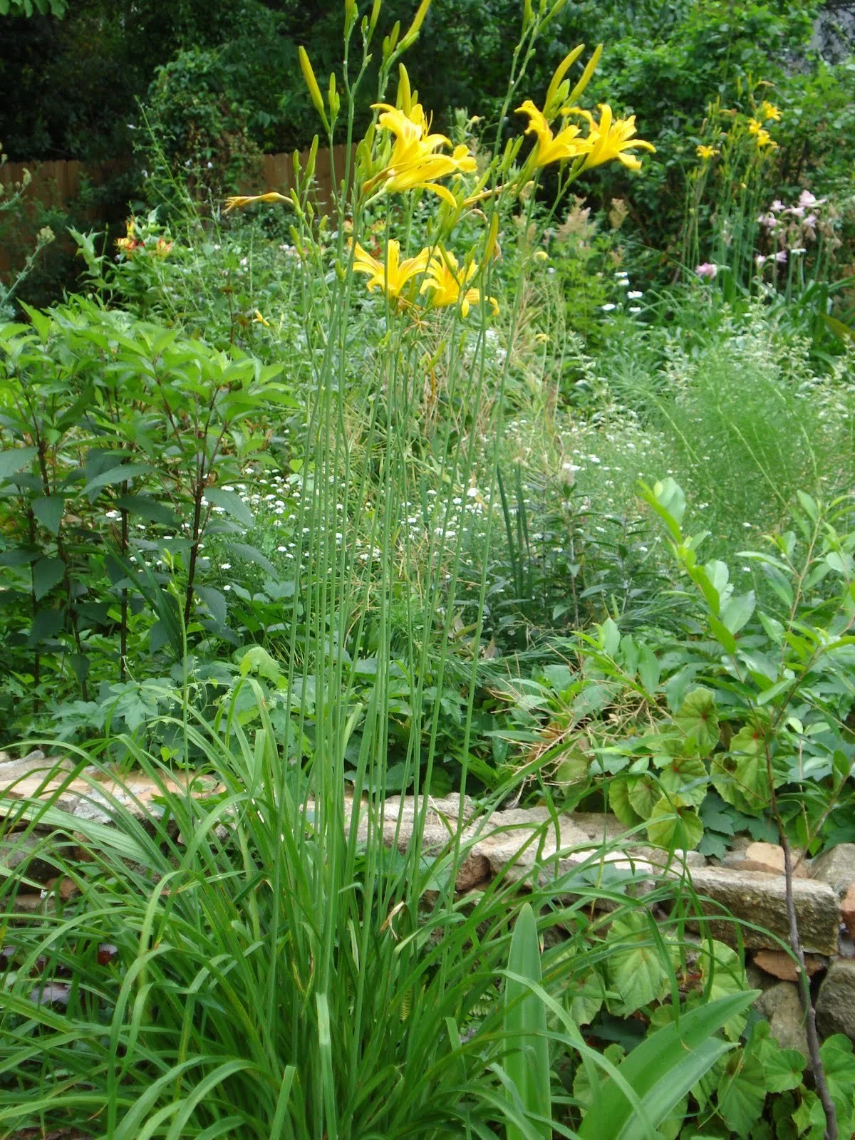 I am constantly amazed by the Hemerocallis in this garden. While I don't know all the cultivars, there is one in the garden that reaches over 5'. It seems taller cultivars are harder to find in today's industry, but some heavier research may hopefully prove my thought wrong. I counted the stalks on this particular daylily and there are seventeen! In another of Elizabeth Lawrence's writings she notes of one daylily with thirty-two! The daylily is definitely a southern favorite.