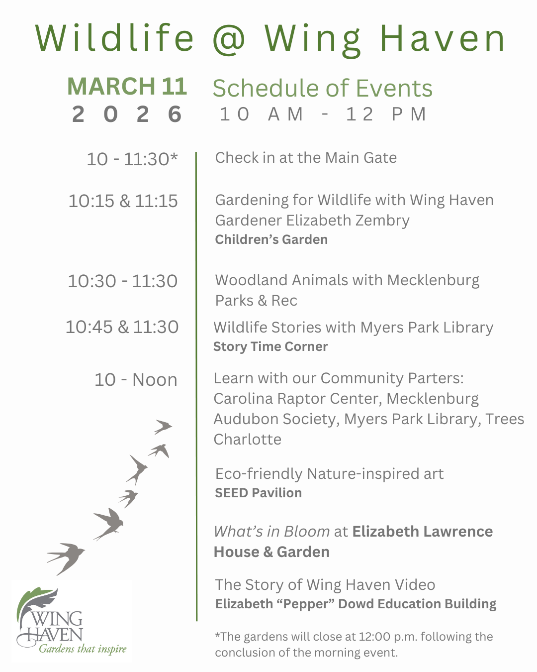 Come celebrate backyard wildlife at Wing Haven, a Certified Wildlife Habitat. Learn about the benefits of attracting wildlife to your backyard from our community partners and leave feeling inspired to create your own certified wildlife habitat.